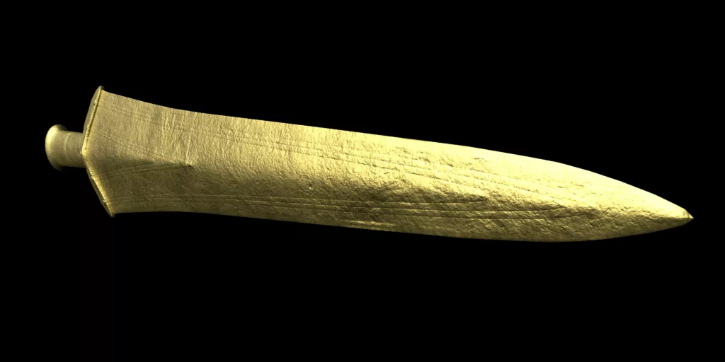 Model of an ancient bronze dagger used 4000 years ago in Europe. The original was founded near Szczecin in present...