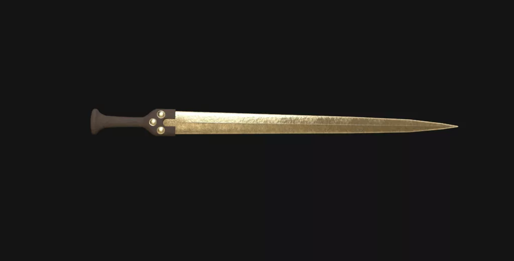 Model of an ancient bronze sword used around 16th century BC in Europe. Organic handle was mounted on broze blade...